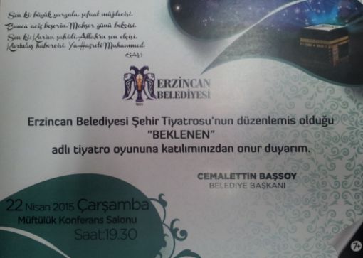 U | | 2015 tiyatro haberleri Erzincan Belediyesi Tiyatro topluluğu beklenen isimli oyununu sergiledi.